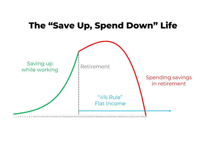 Because everyone is only thinking about the accumulation phase of their life and locks themselves into just trying to create the “biggest account,” what ends up happening is we end up living what I call the save-up, spend-down lifestyle.